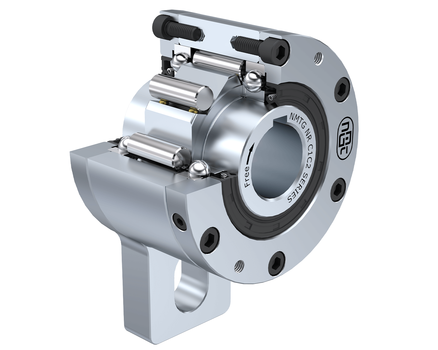 Trapped rollers Freewheels NR C1C2 model is Self-centred by means of Oil Sealing & pairs of ball bearing supported. So, unit is Self-sealed designed.